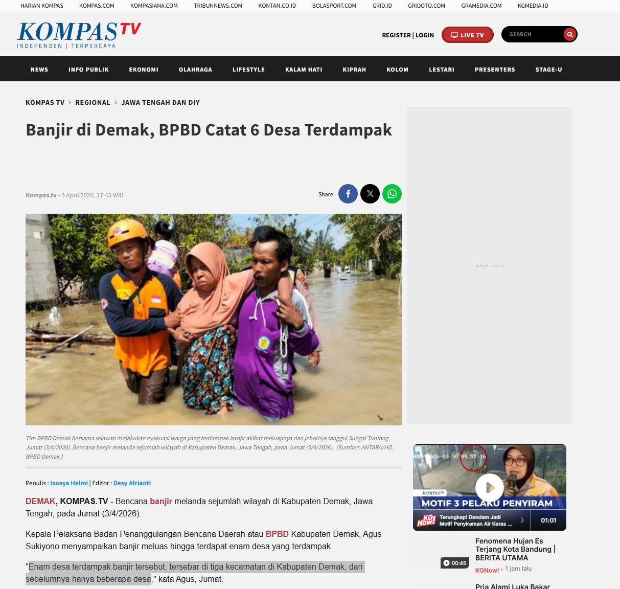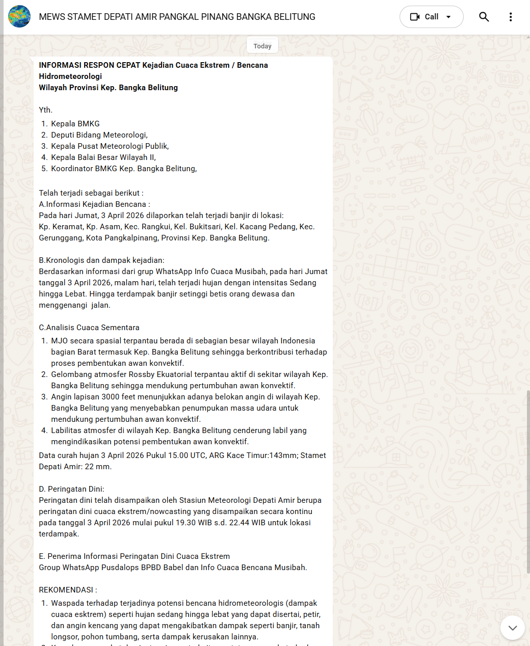 Telah terjadi Hujan Lebat, Banjir / Genangan, Gangguan Transportasi di Kota Pangkal Pinang, Kepulauan Bangka Belitung pada 03 Apr 2026 22:30 WIB (malam) Selengkapnya