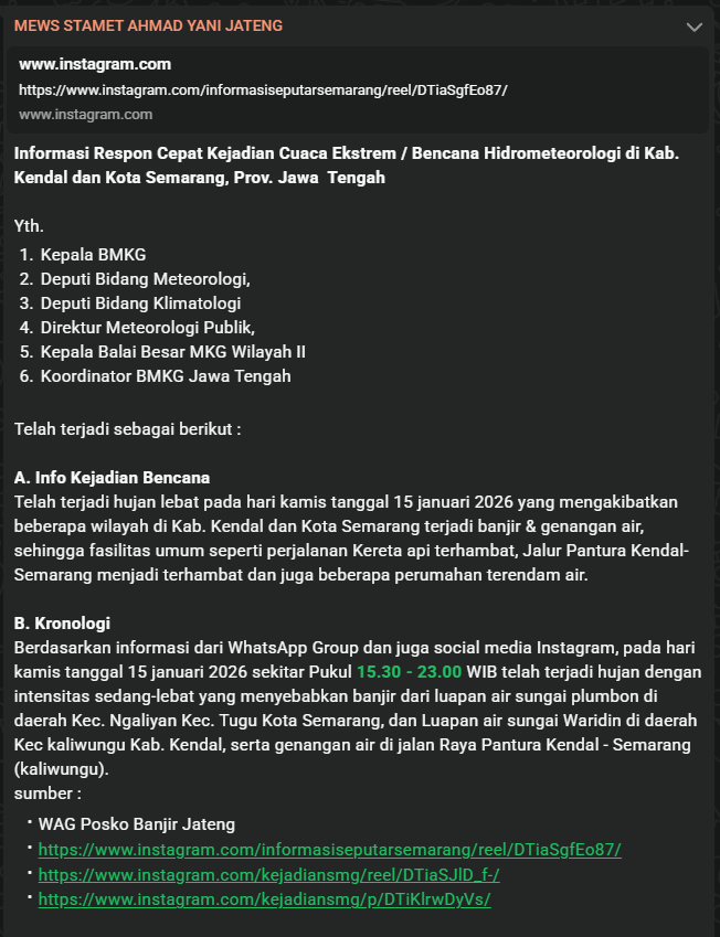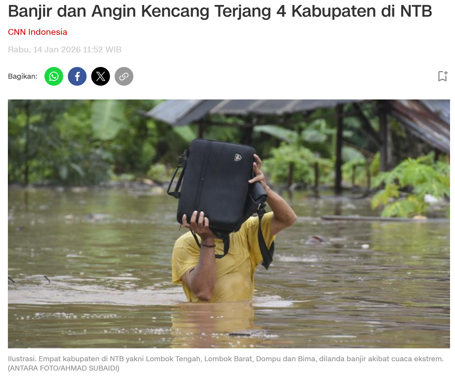 Cuaca Ekstrem: Puting Beliung 14/01/2026 - 15/01/2026