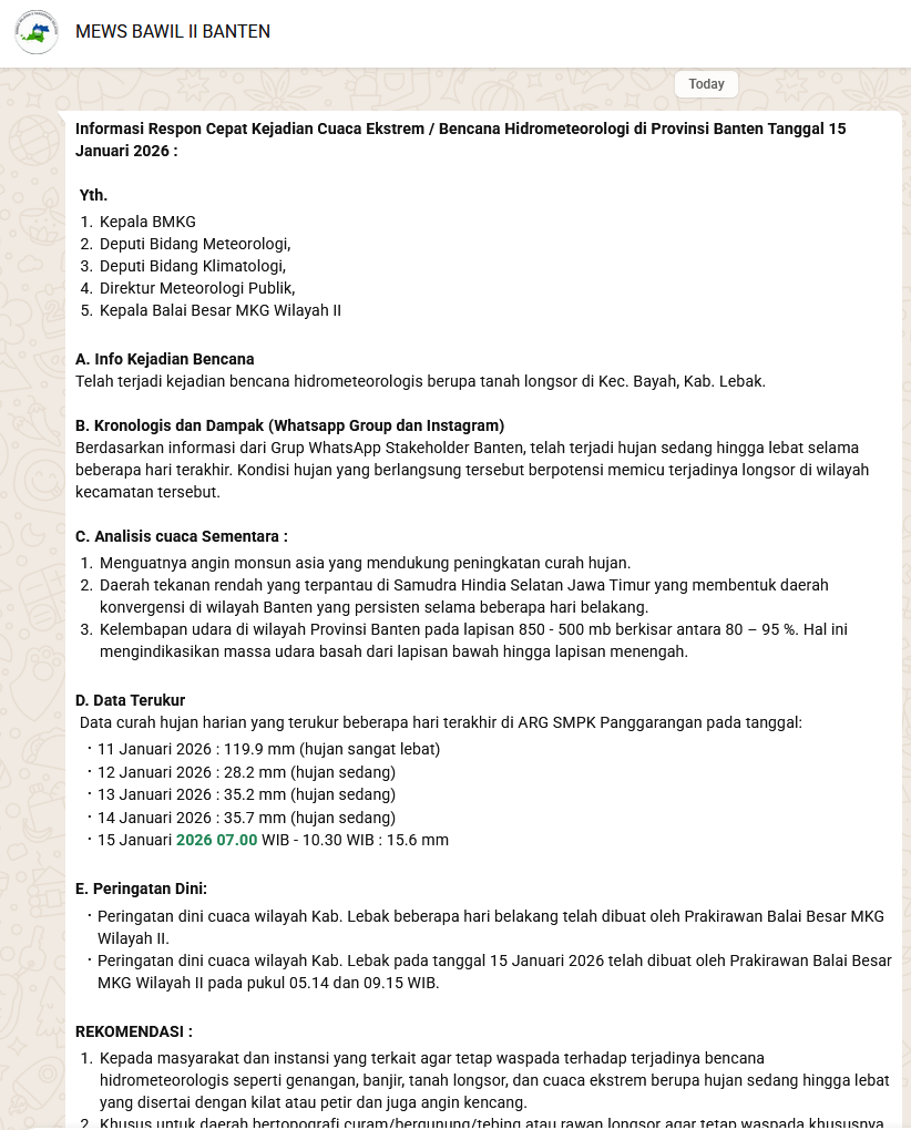 Hujan Lebat, Tanah Longsor, Bangunan Rusak, Gangguan...