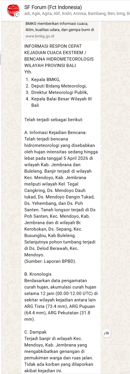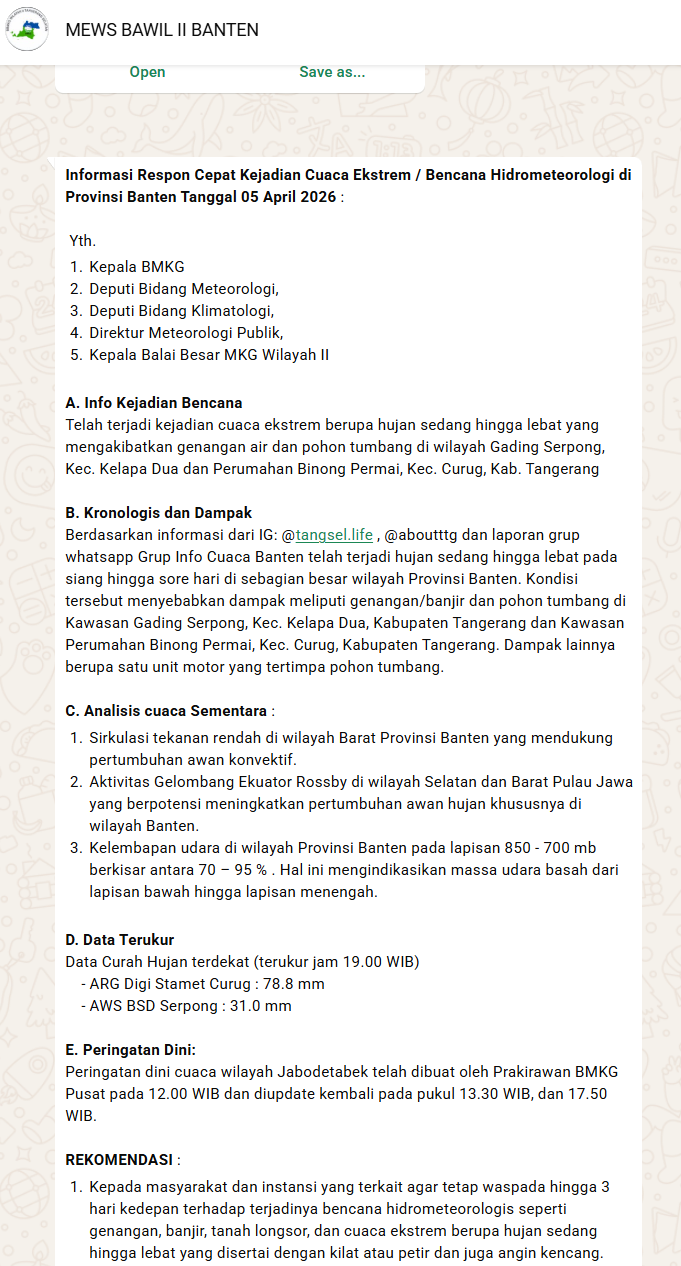 Cuaca Ekstrem: Hujan Lebat 04/04/2026 - 05/04/2026