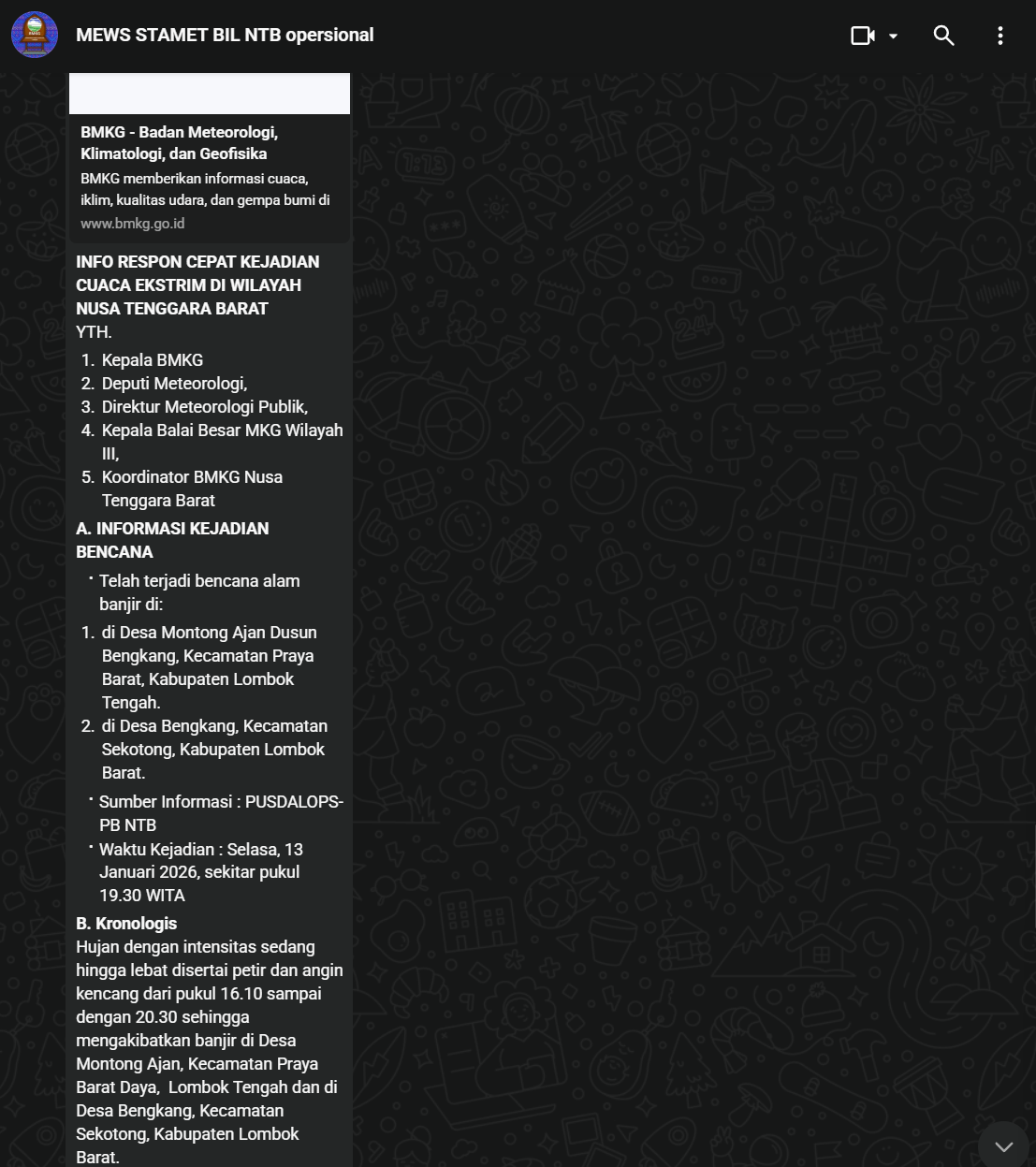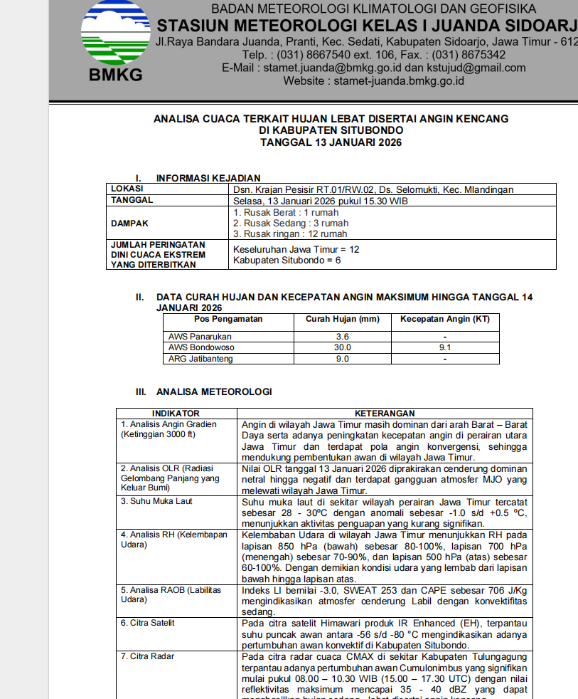 Cuaca Ekstrem: Hujan Lebat 12/01/2026 - 13/01/2026
