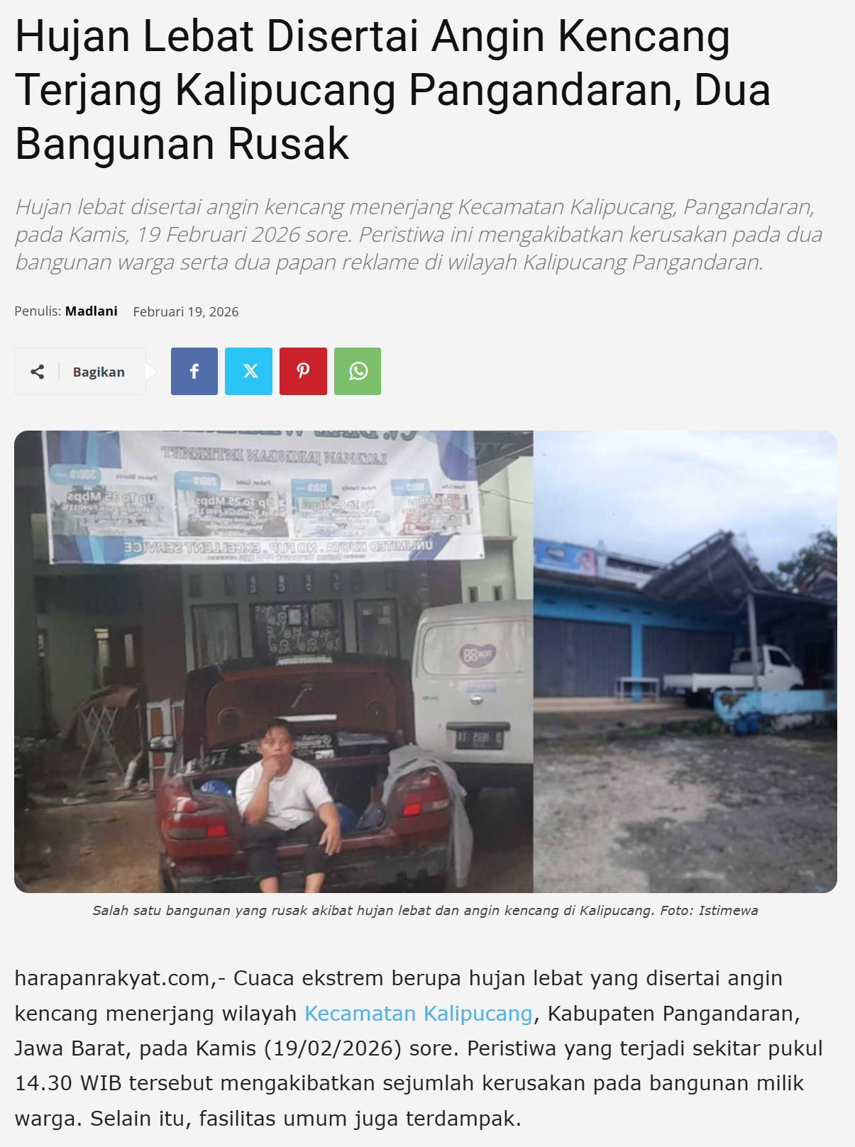 Angin Kencang, Hujan Lebat, Banjir / Genangan, Bangunan Rusak