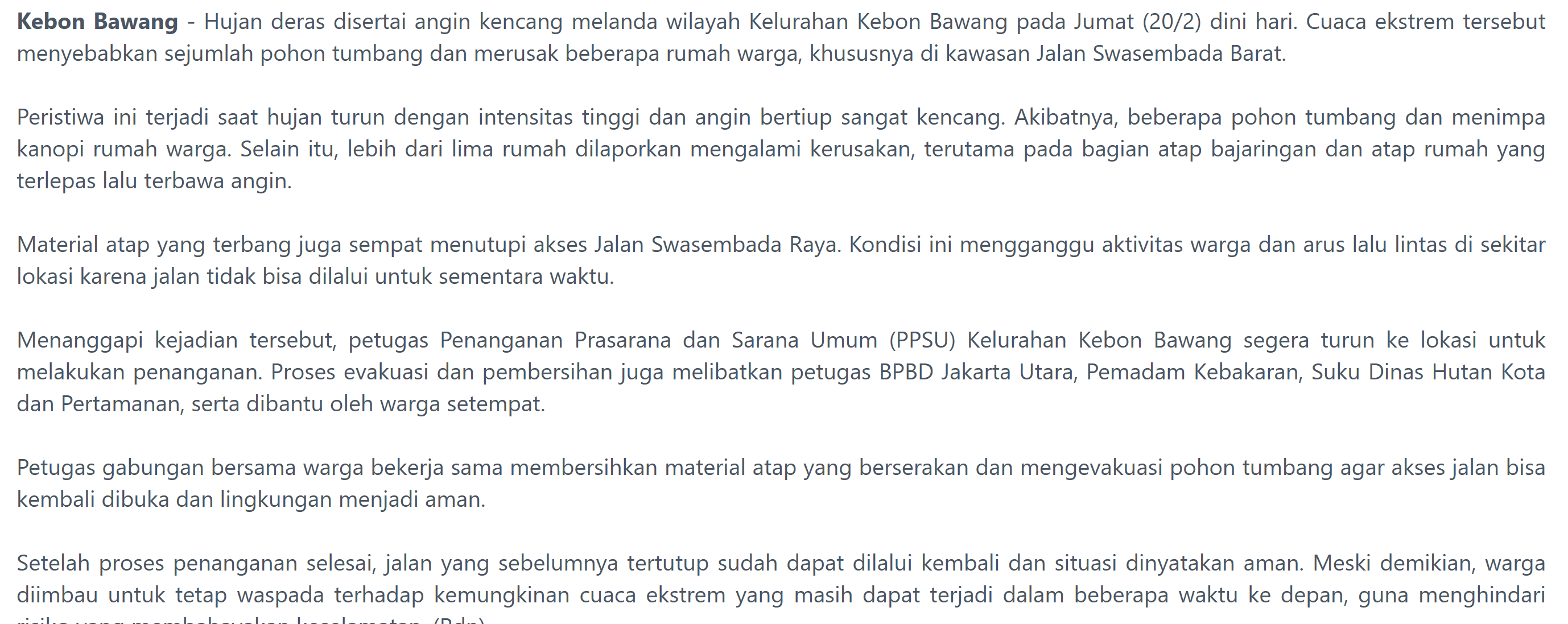 Berita Kejadian Bencana