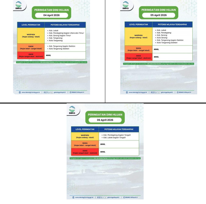 Banten, 04 April 2026 Prakirawan Cuaca ADMIN |