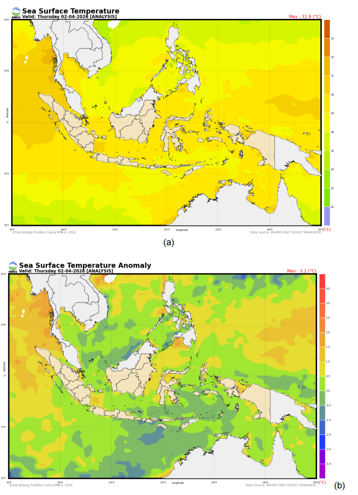 Suhu muka laut pada tanggal 2 April 2026 berkisar 29 s.d.