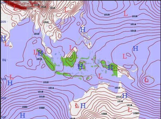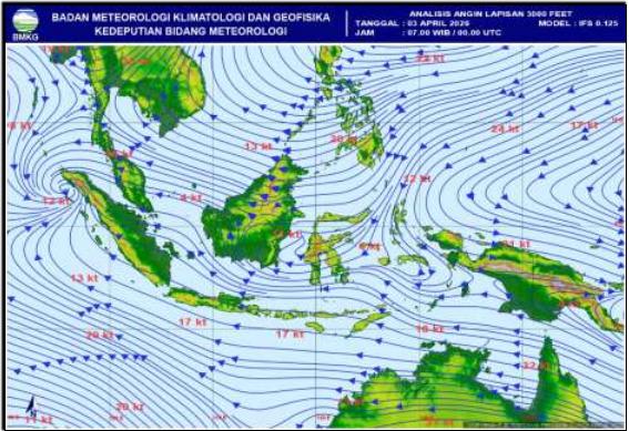Berdasarkan analisa tekanan udara permukaan laut tanggal 3 April 2026 jam