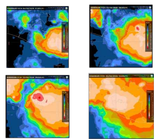 Berdasarkan citra satelit HIMAWARI-8 tanggal 3 April 2026 jam 12.00 –