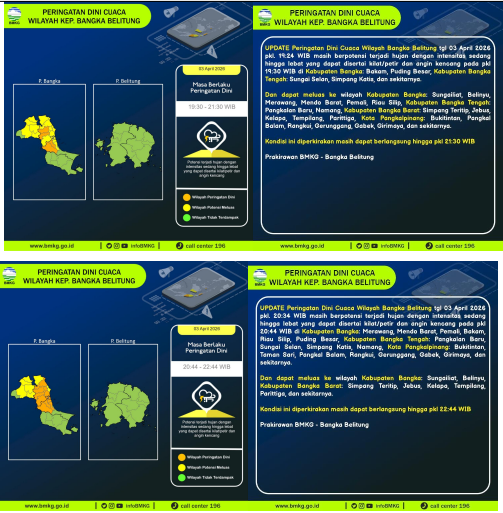 Kepulauan Bangka Belitung, 04 April 2026 Prakirawan Cuaca ADMIN |