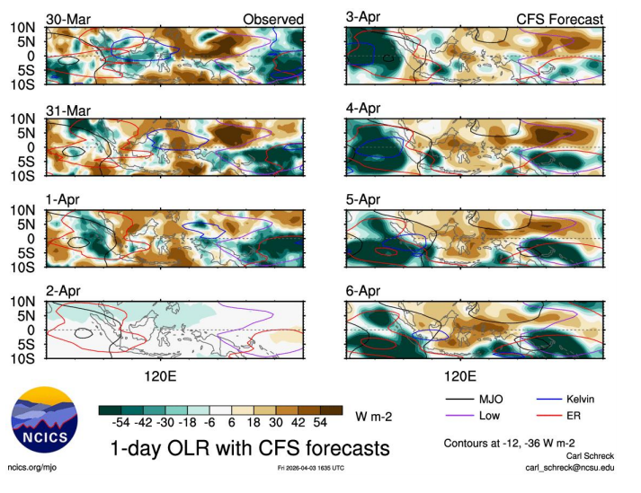Data gelombang atmosfer (Gambar 3) menunjukkan MJO secara
