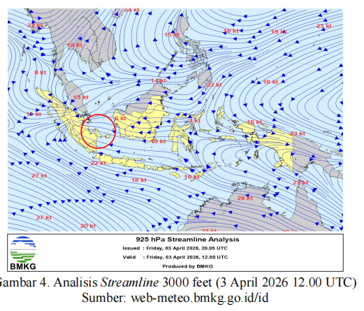 Analisis streamline angin lapisan 3000 feet (Gambar 4)