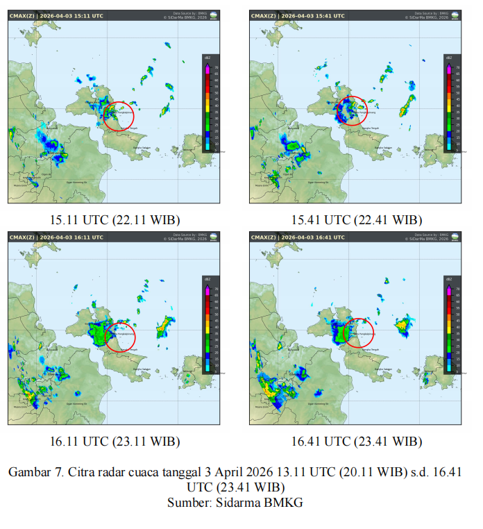 Citra radar cuaca Pangkalpinang (Gambar 7) menunjukkan
