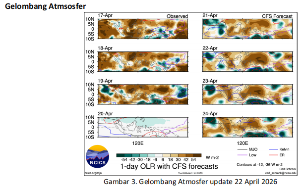 Gelombang Kelvin aktif di sebagian wilayah Jawa Barat, yang berkontribusi terhadap potensi peningkatan hujan di wilayah Jawa Barat.