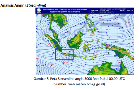 Terpantau daerah sirkulasi siklonik di sekitar wilayah Jawa Barat, kondisi tersebut mendukung potensi pembentukan awan konvektif di sebagian wilayah Jawa Barat.